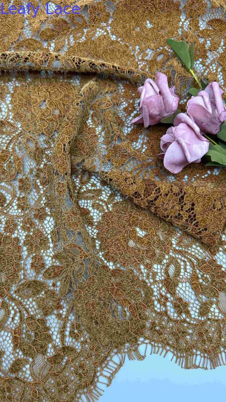 Καφέ χρώμα Chenille Yarn Floral Scalloped Edge Lace Fabric By The Yard Φόρεμα για γυναίκες Φόρεμα