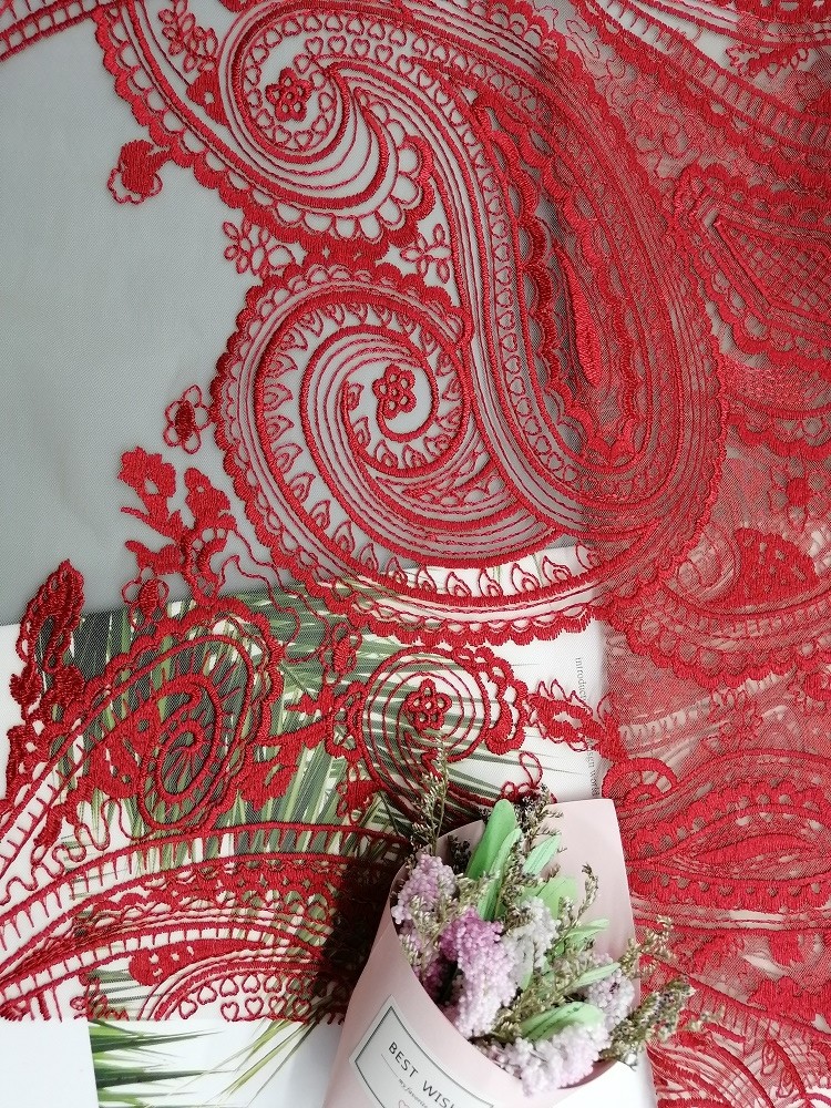 - Το κόκκινο του Tulle ύφασμα δαντελλών του Paisley υφάσματος κεντητικής πλέγματος νυφικό χρωματισμένο φόρεμα είναι κατάλληλο για τις γυναίκες, τα κορίτσια, τις κυρίες, τη νύφη, το γάμο, το κόμμα, τα γενέθλια και οποιαδήποτε άλληδήποτε περίπτωση.