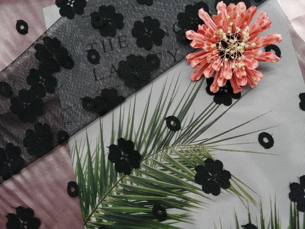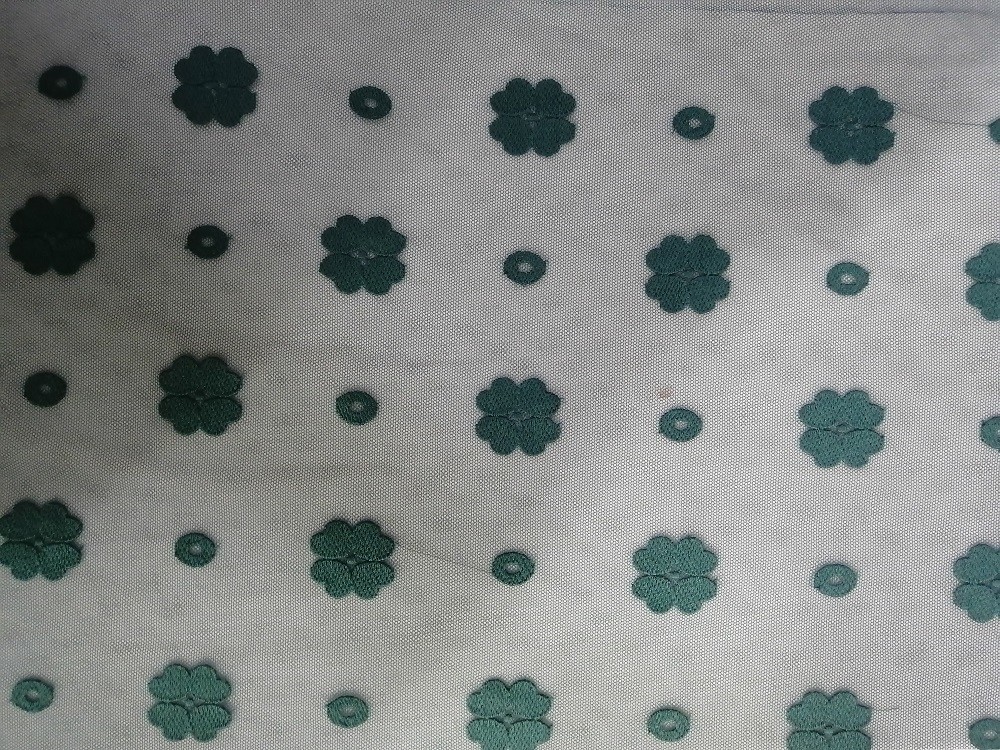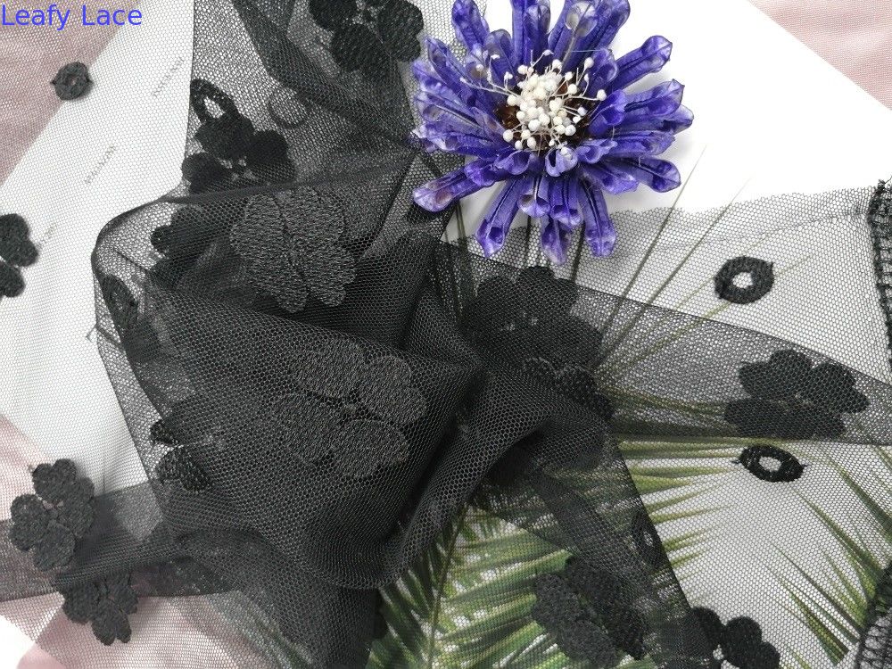 Το πράσινο χρώμα κέντησε το ύφασμα δαντελλών για τα εμπορικά σήματα ενδυμάτων φορεμάτων μικρών κοριτσιών εργοστασίων ενδυμάτων γυναικών, τα εγχώρια κλωστοϋφαντουργικά προϊόντα, την κουρτίνα, τα τοποθετώντας στο κρεβάτι άρθρα, τις ενδυμασίες, τα καπέλα, τα γαμήλια φορέματα, τις μπλούζες, κ.λπ. Το μπλε χαριτωμένο ύφασμα δαντελλών πλέγματος του Tulle κέντησε το ύφασμα δαντελλών για τα φορέματα μικρών κοριτσιών γυναικείων ενδυμάτων