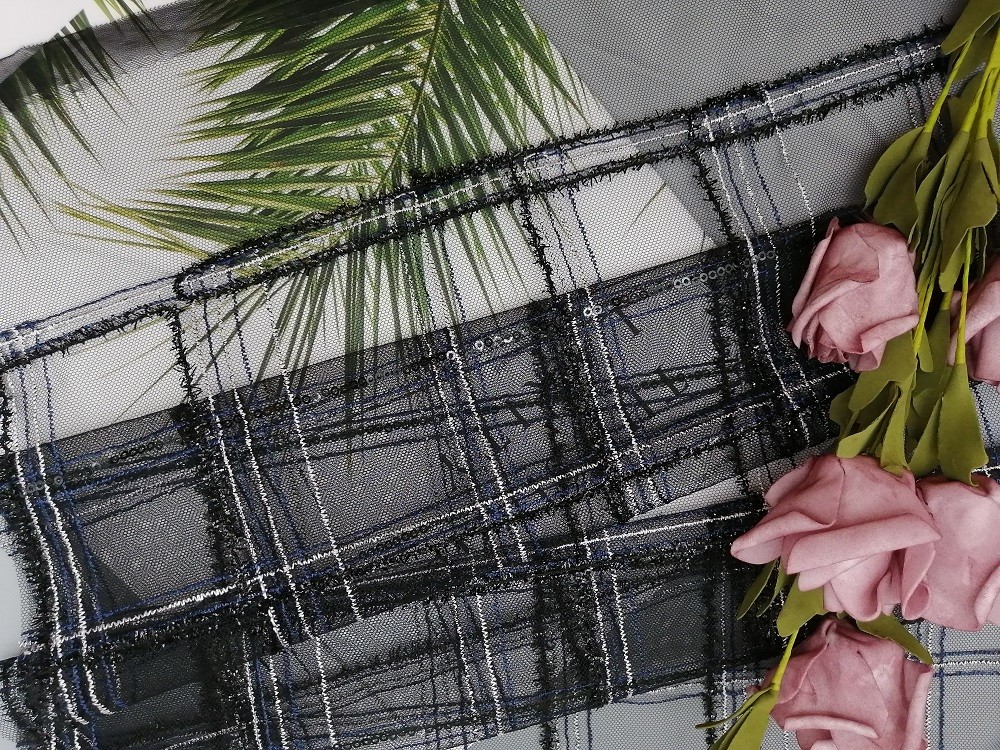 100% το κεντημένο τσέκι ύφασμα πλέγματος NavyTulle πολυεστέρα για το φόρεμα μικρών κοριτσιών εμπορικών σημάτων ενδυμάτων γυναικείων φορεμάτων φορεμάτων βραδιού μπορεί να καλύψει την απαίτηση OEKO-Tex των προτύπων 100.