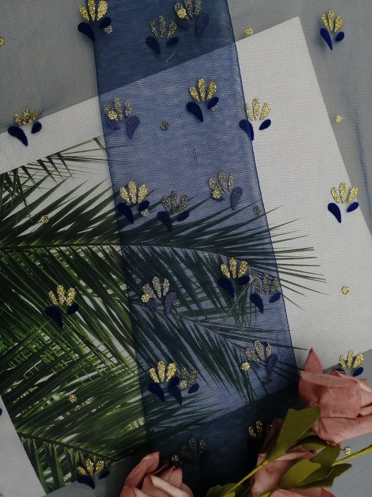 Βασιλικός μπλε μεταλλικός που συγκεντρώνεται ακτινοβολεί τυπωμένο φύλλο αλουμινίου ύφασμα πλέγματος του Tulle για το φόρεμα μικρών κοριτσιών γυναικείων ενδυμάτων φορεμάτων βραδιού είναι για τα εγχώρια κλωστοϋφαντουργικά προϊόντα, την κουρτίνα, τα άρθρα κλινοστρωμνής, τις ενδυμασίες, τα καπέλα, τα γαμήλια φορέματα, τις μπλούζες, τα γυναικεία ενδύματα, το τραπεζομάντιλο, τα φορέματα μικρών κοριτσιών, τα θηλυκά παπούτσια μόδας, τα εσώρουχα, το παντελόνι, τα σορτς, τα σακάκια, κ.λπ.
