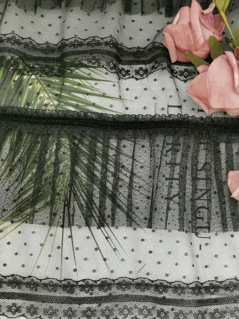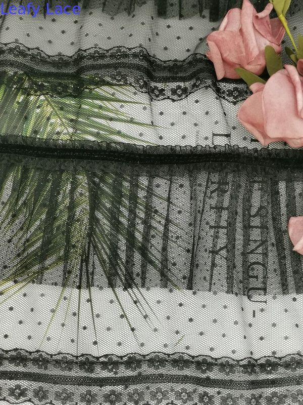 Το μαύρο πλέγμα του Tulle εκτύπωσης φύλλων αλουμινίου σημείων πτύχωσε Crinkle υφάσματος δαντελλών συντριμμένες τις πλέγμα προδιαγραφές δαντελλών: