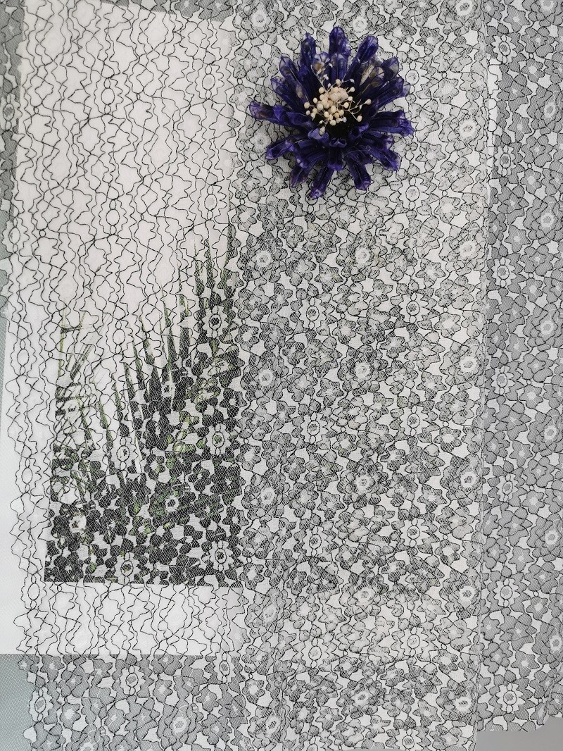 | Ύφος: | Δίχρωμο άσπρο μαύρο ύφασμα δαντελλών | Χαρακτηριστικό γνώρισμα: | Κεντητική του Tulle |