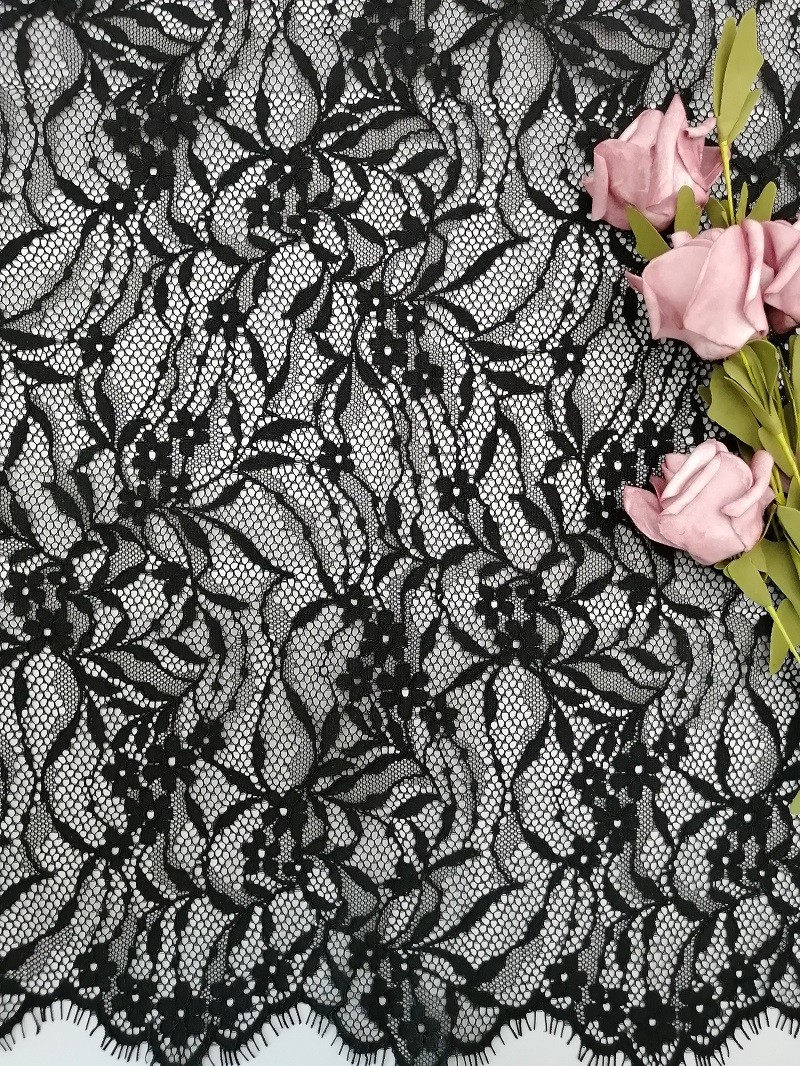 Μαύρη του Tulle πλέγματος γαλλική Chantilly δαντέλλα Eyelash δαντελλών δαντελλών ελαφριά με τις προδιαγραφές οστράκων: