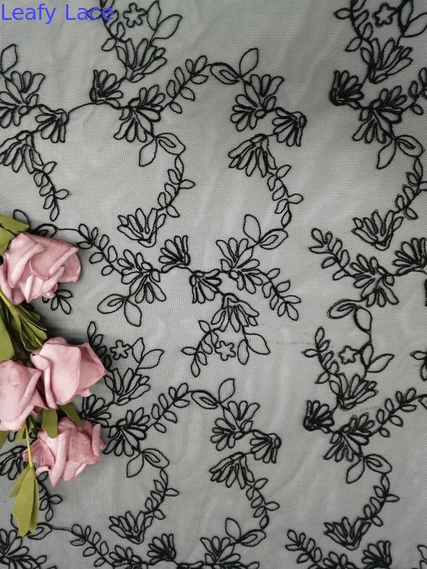 - Η μαύρη σχοινόδετη κεντητική λουλουδιών δένει παντού το ύφασμα που το ασημένιο πλέγμα του Tulle μπορεί να καλύψει την απαίτηση OEKO-Tex των προτύπων 100.