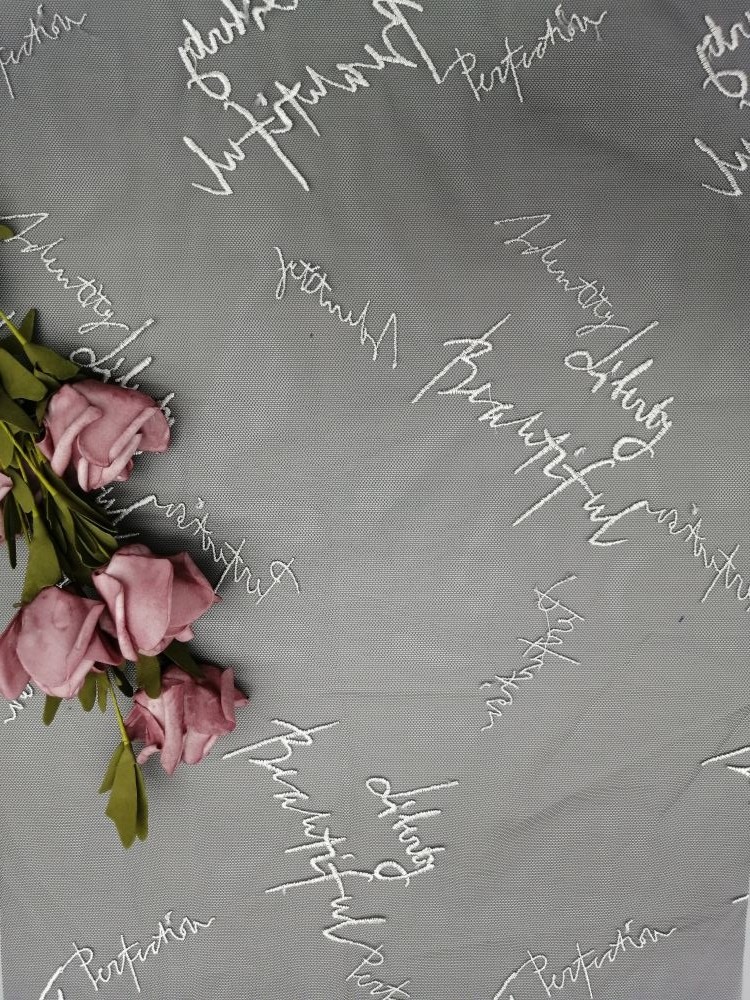 - Κεντημένο πλέγμα κεντητικής υφάσματος πλέγματος του Tulle τουλιού σχεδίων επιστολών το δαντέλλα μπορεί να καλύψει την απαίτηση OEKO-Tex των προτύπων 100.