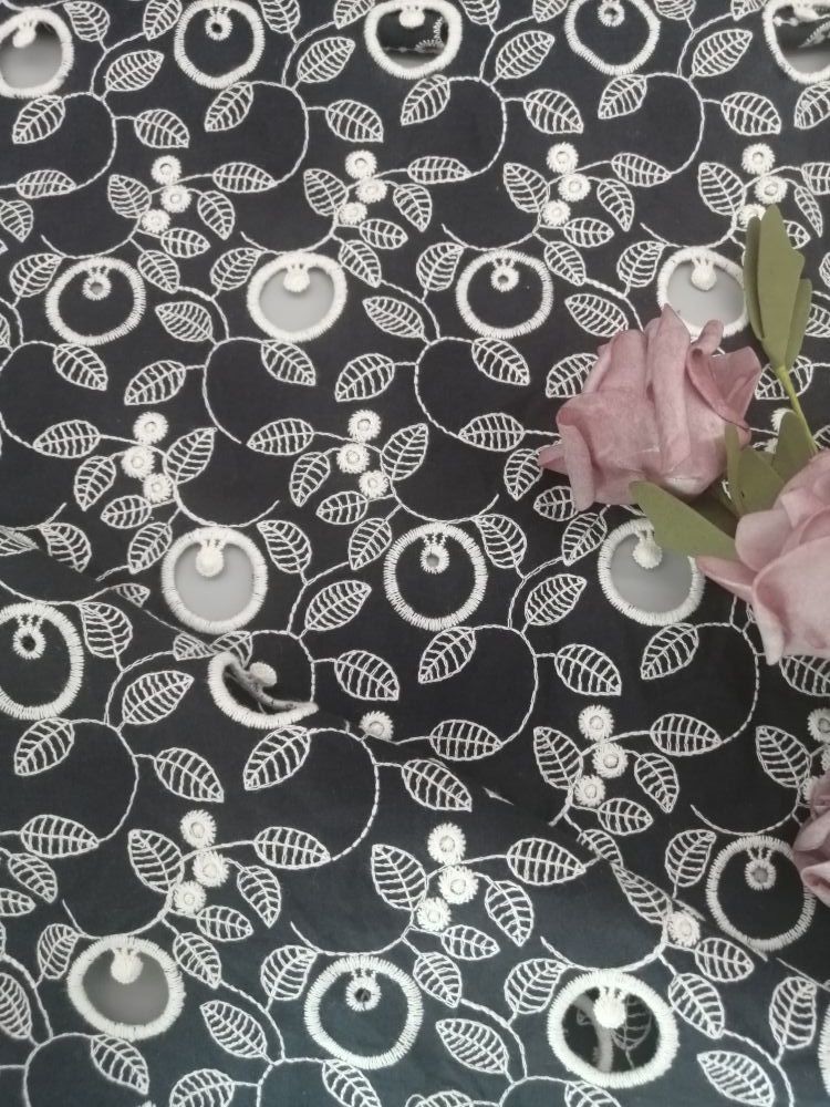 Αυτό Κεντημένο ύφασμα οπών αποτελείται από 100% υψηλό - τούλι βαμβακιού ποιοτικού Comed που είναι μαλακό. Το έξοχο φωτεινό βαμβάκι Voil έχει το μεγάλο breathability. Το μαύρο backgroud και η άσπρη αντίθεση νημάτων βαμβακιού δίχρωμη creats κοιτάζουν. Η λεπτή τρύπα οπών είναι μαζί μικρό floral σχέδιο παρουσιάζει μοναδικό σχέδιο. Έχει αρκετοί greige στο απόθεμα για τη γρήγορη παράδοση.
