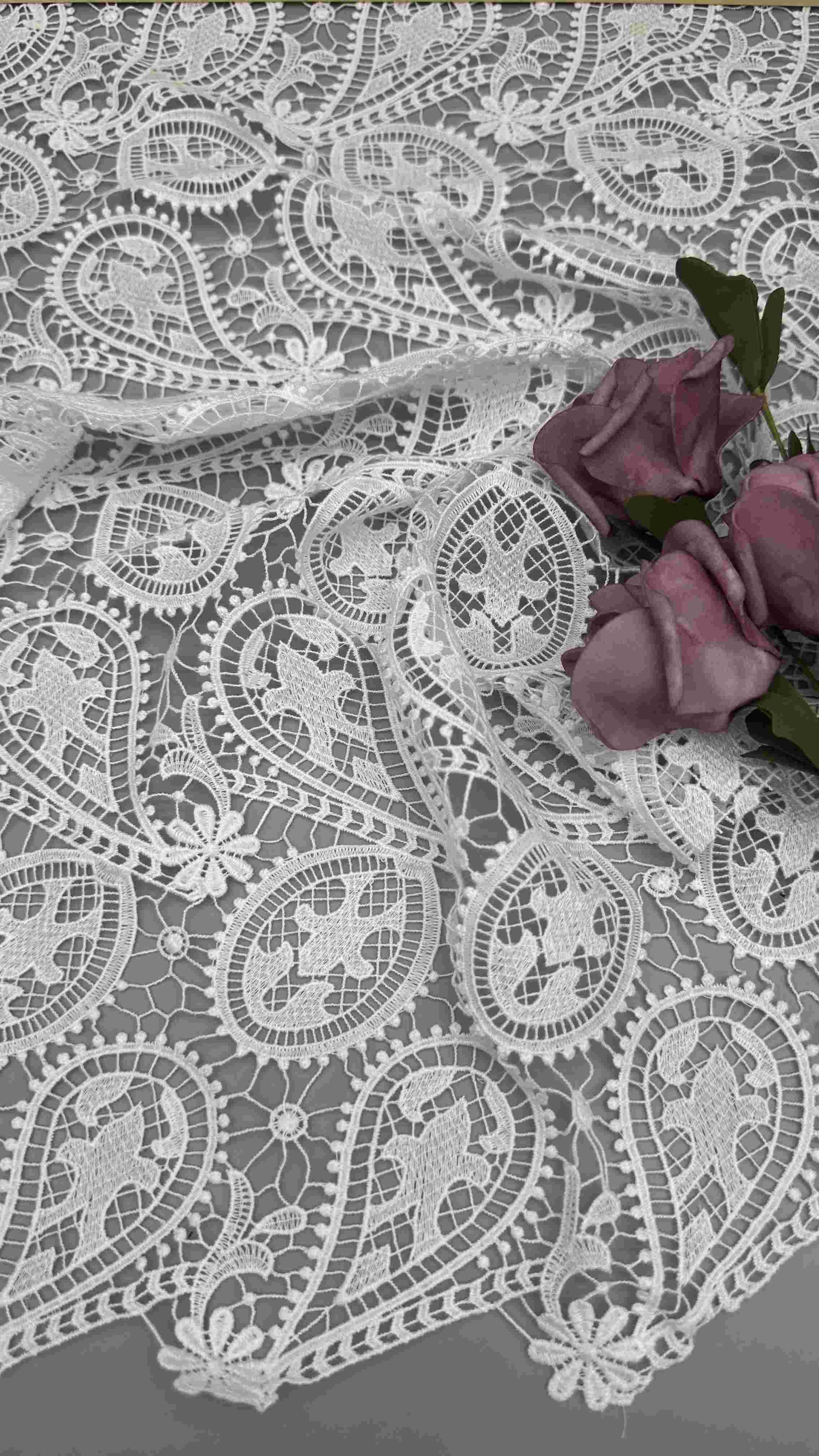 Αυτή η χημική κεντημένη δαντέλα μπορεί να είναι ένα μεγάλο πλήρες φόρεμα για ρούχα μόδας, γάμο και πάρτι κλπ. Επίσης μπορεί εύκολα να μετατραπεί σε αγαπημένες σας διακοσμήσεις από το απλό έξυπνο σχεδιασμό σας.