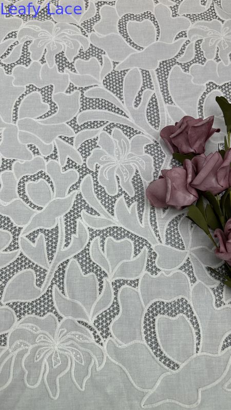 Το κεντό ύφασμα από δαντέλα με ευαίσθητα φύλλα είναι μια δημοφιλής επιλογή για νυφικά γάμου και πάρτι, προσφέροντας κομψότητα, υφή και περίπλοκες λεπτομέρειες.Η τεχνολογία που βρίσκεται πίσω από την παραγωγή του περιλαμβάνει ένα συνδυασμό παραδοσιακής βιοτεχνίας και σύγχρονων κλωστοϋφαντουργικών καινοτομιών.