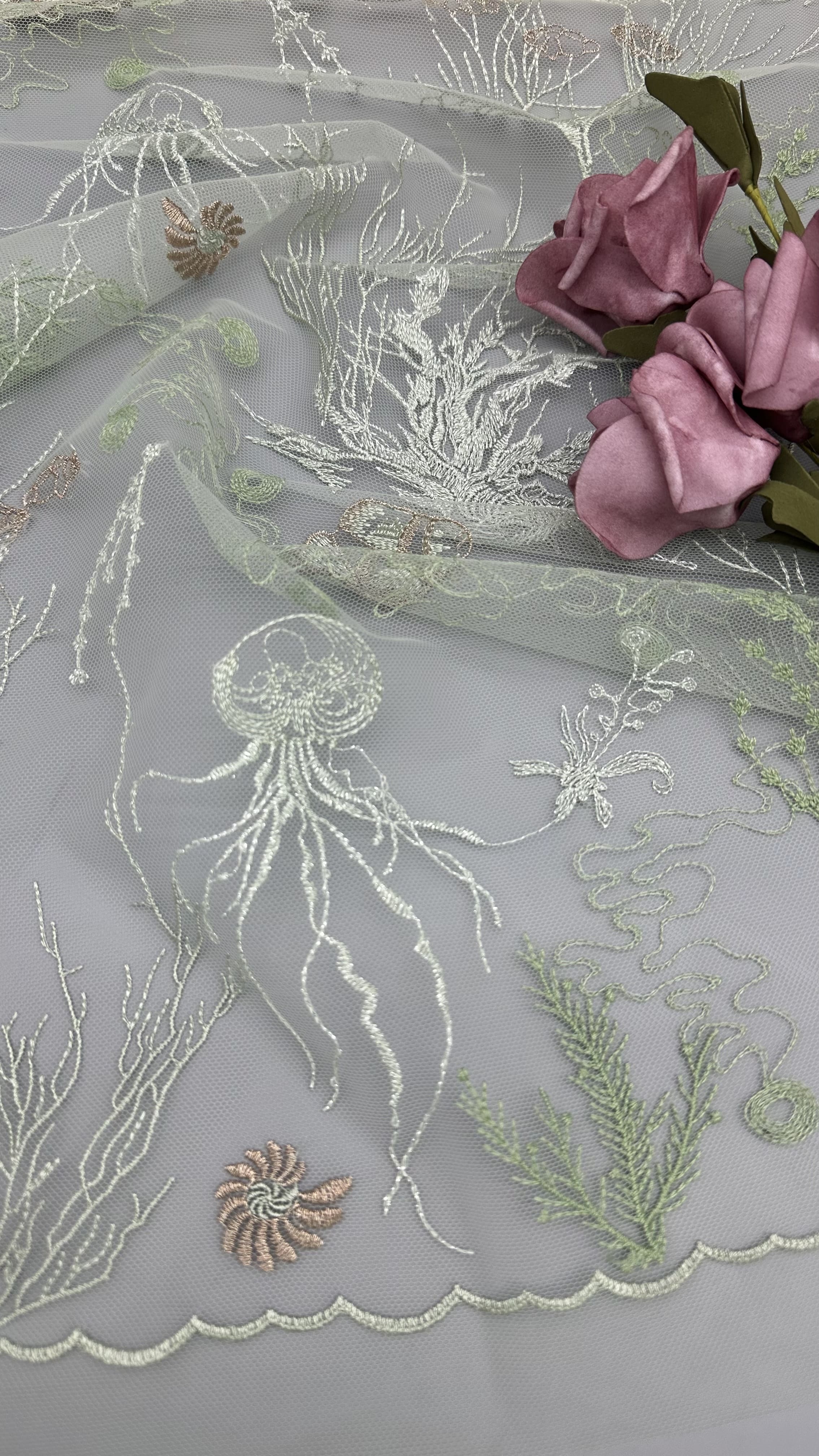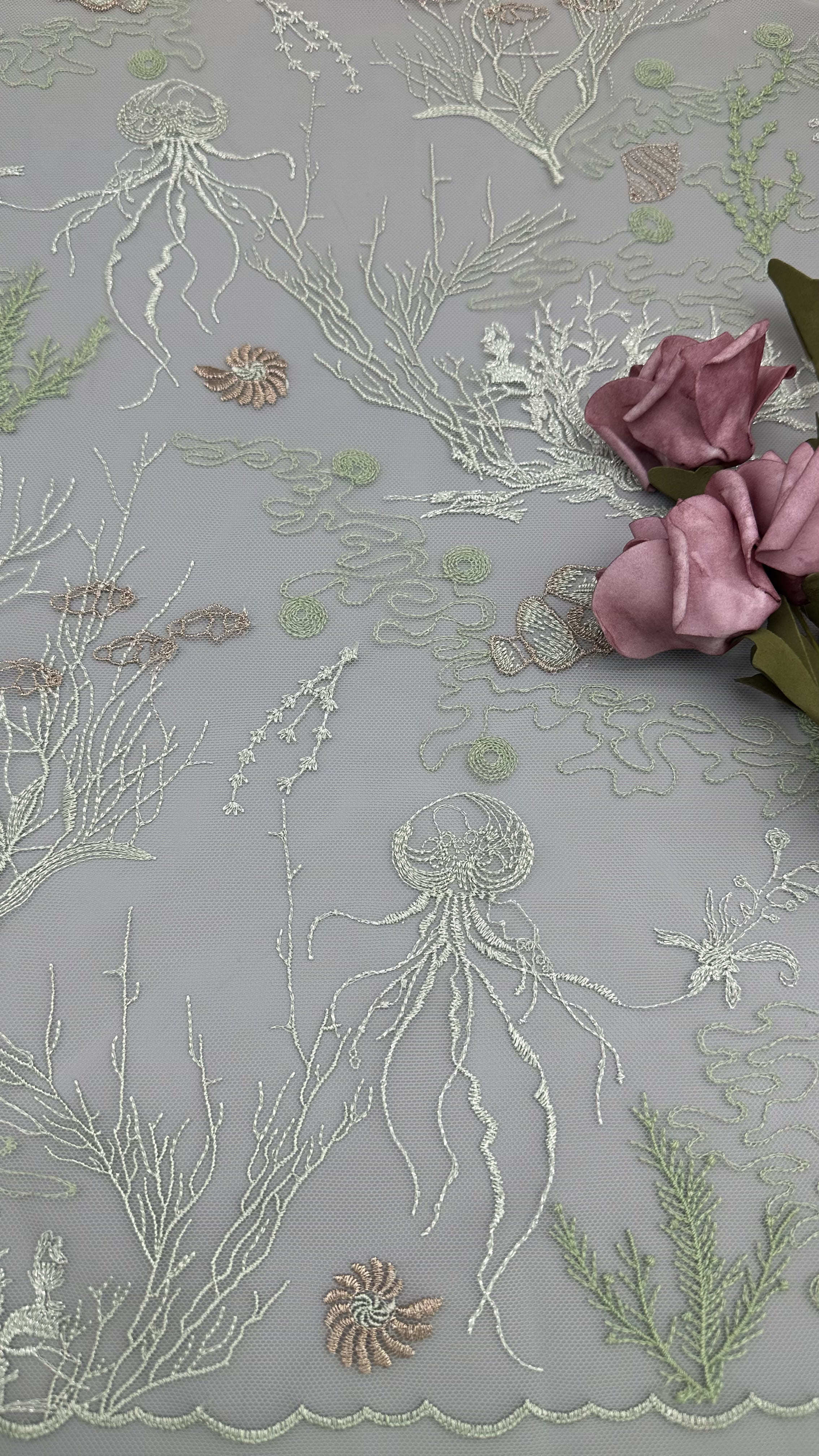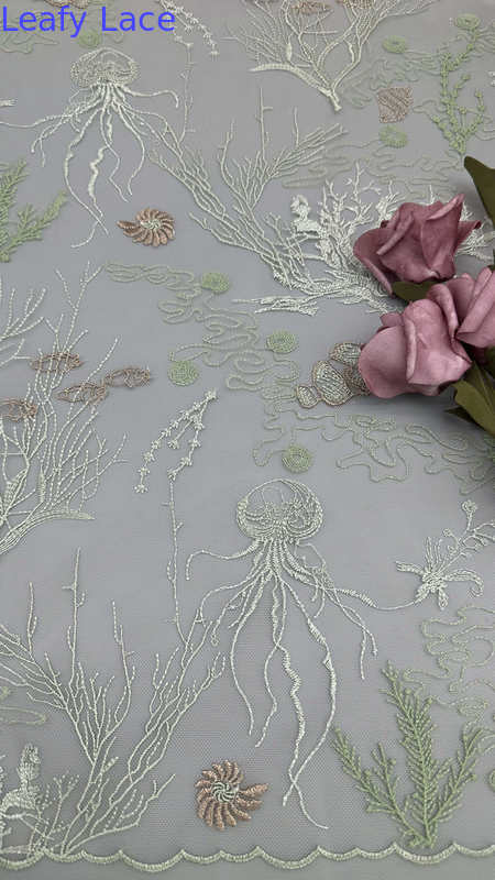 | Επισημαίνω: | embroidered lace fabric for dresses,luxury sea embroidered lace breather,women's evening gown lace fabric |